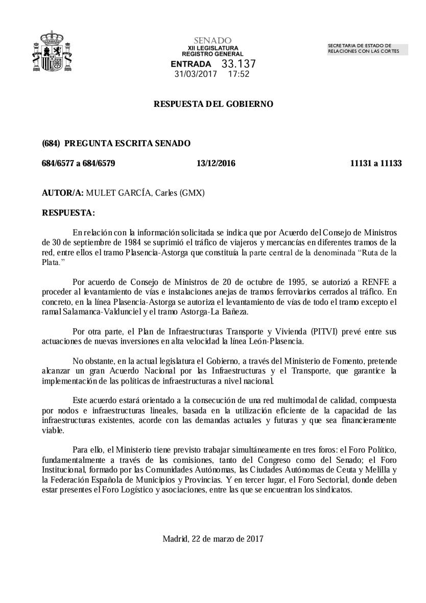 0001 28 agosto, 2017 • 2482 × 3510 • Preguntas registradas en el Senado por Mulet a propuesta del CCRL, sobre el tren Ruta de la Plata y su respuesta insatisfactoria