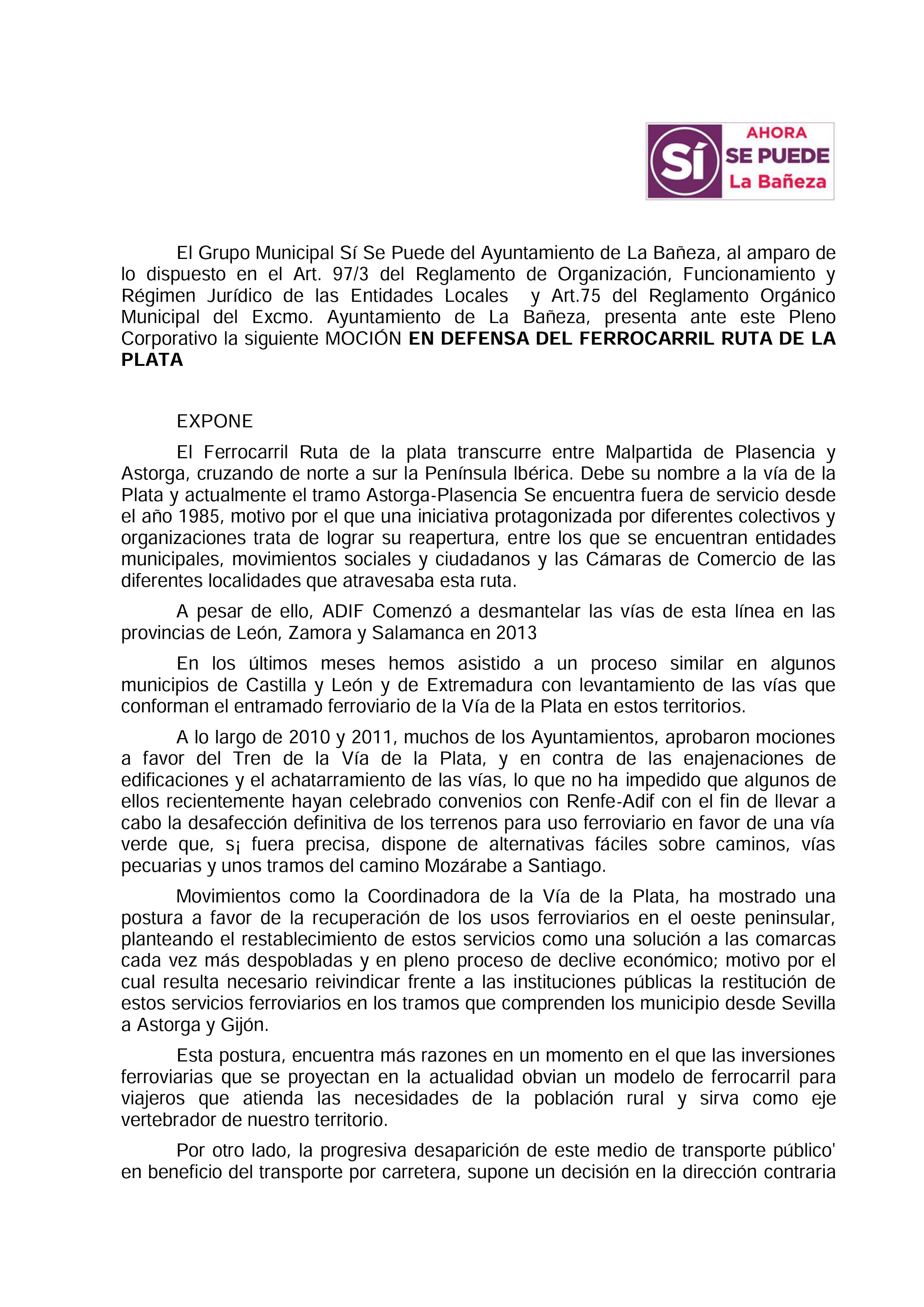 0001 26 mayo, 2017 • 2481 × 3508 • La Bañeza también aprueba en pleno municipal una moción a favor de la reapertura de la línea ferroviaria de la Vía de la Plata, presentada por Sí se Puede