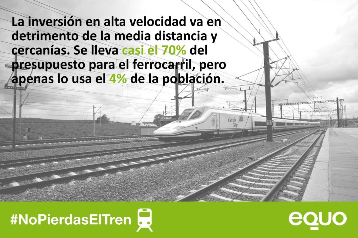 Para EQUO es fundamental que el tren convencional recobre su importancia y se aborden todas las obras necesarias para conformar una red ferroviaria que permita vertebrar el territorio y satisfaga las necesidades de las personas respecto a movilidad, especialmente en aquellas zonas más aisladas.